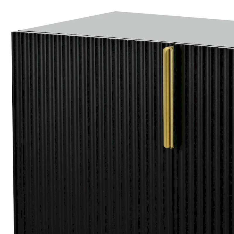 - Simple and elegant sideboard available in black, white, or gray with gold handles and legs, adding classic warmth to any room.