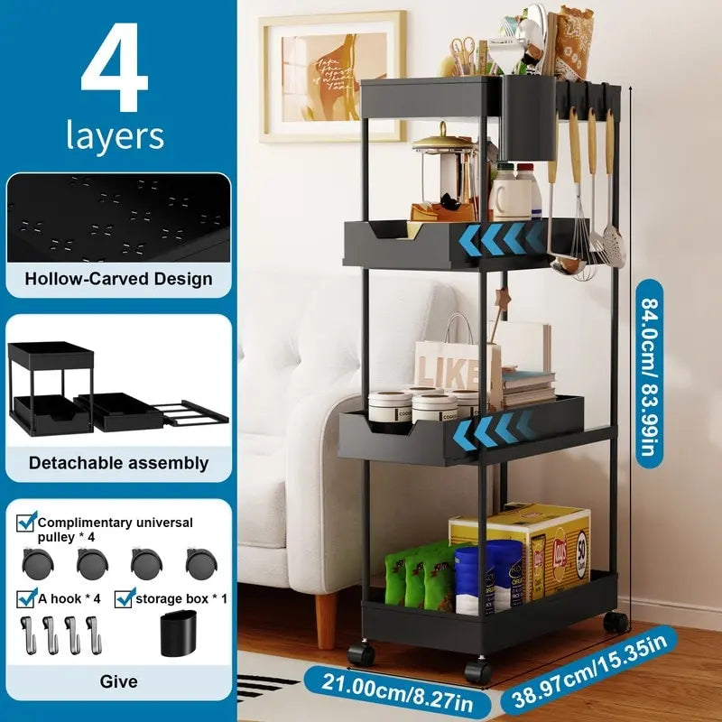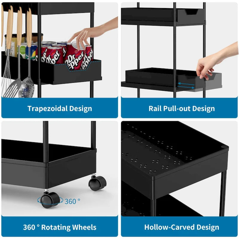 4-Tier Slim Rolling Pull-Out Storage Utility Cart with Wheels