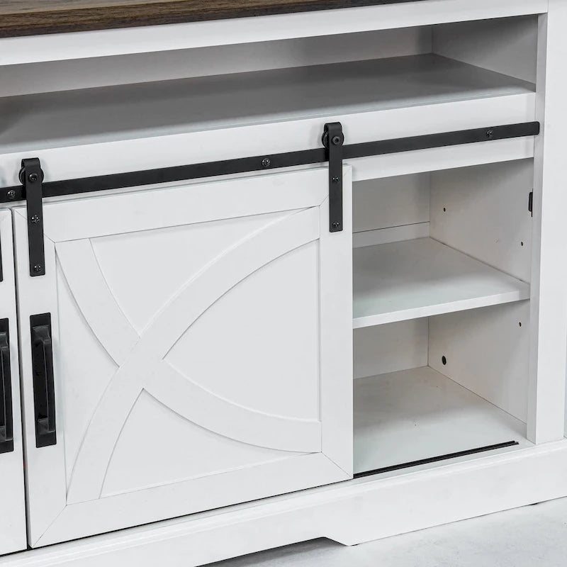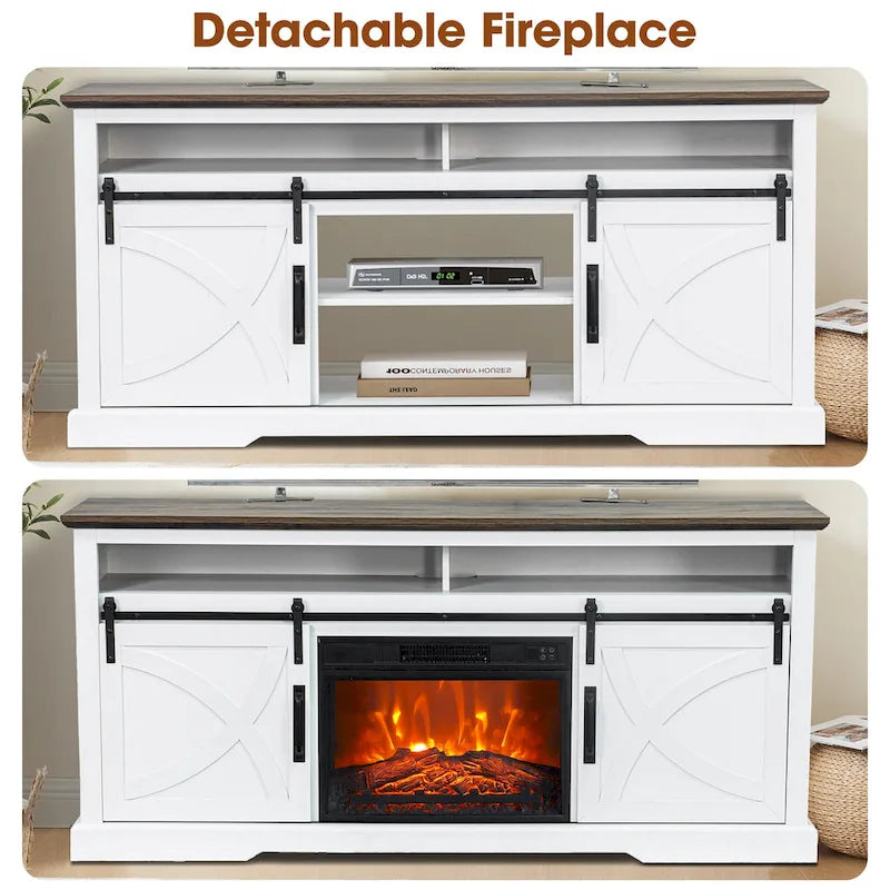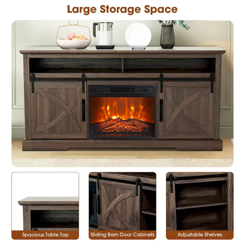 - Rustic, Farmhouse-style Sliding Barn Doors Electric Fireplace TV Stands