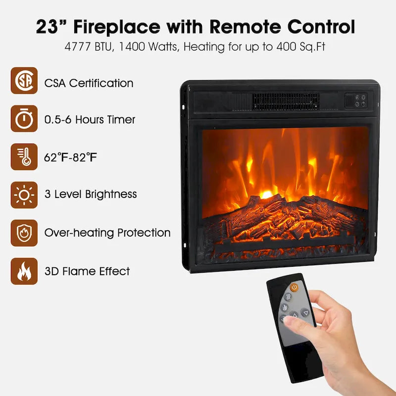 - Fireplace size: 23 inches length x 5 inches width x 17.5 inches high