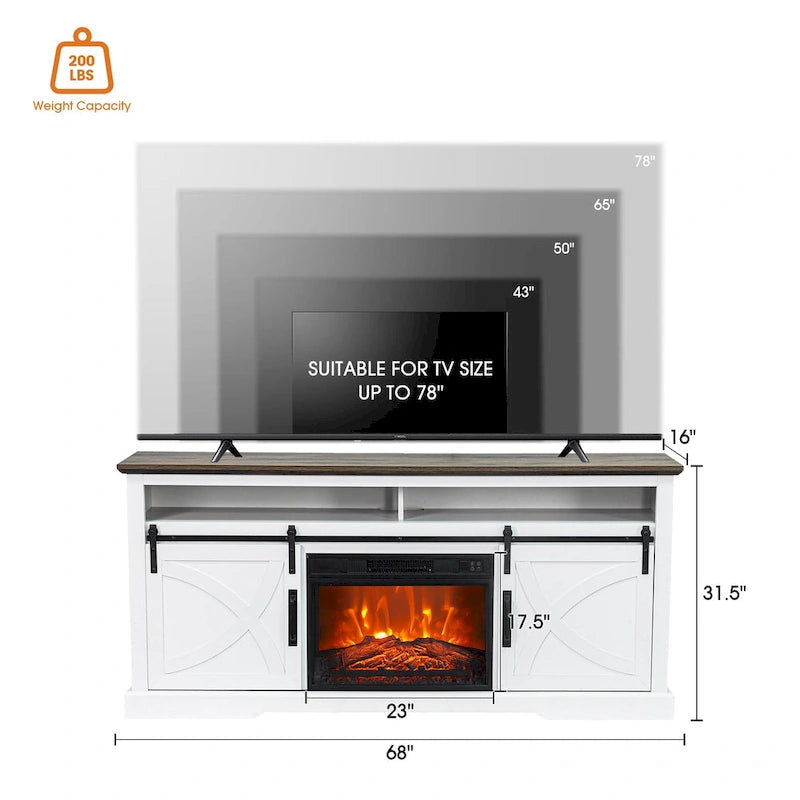 68 Farmhouse Sliding Barn Door Fireplace TV Stands Console Table with 23 Electric Fireplace