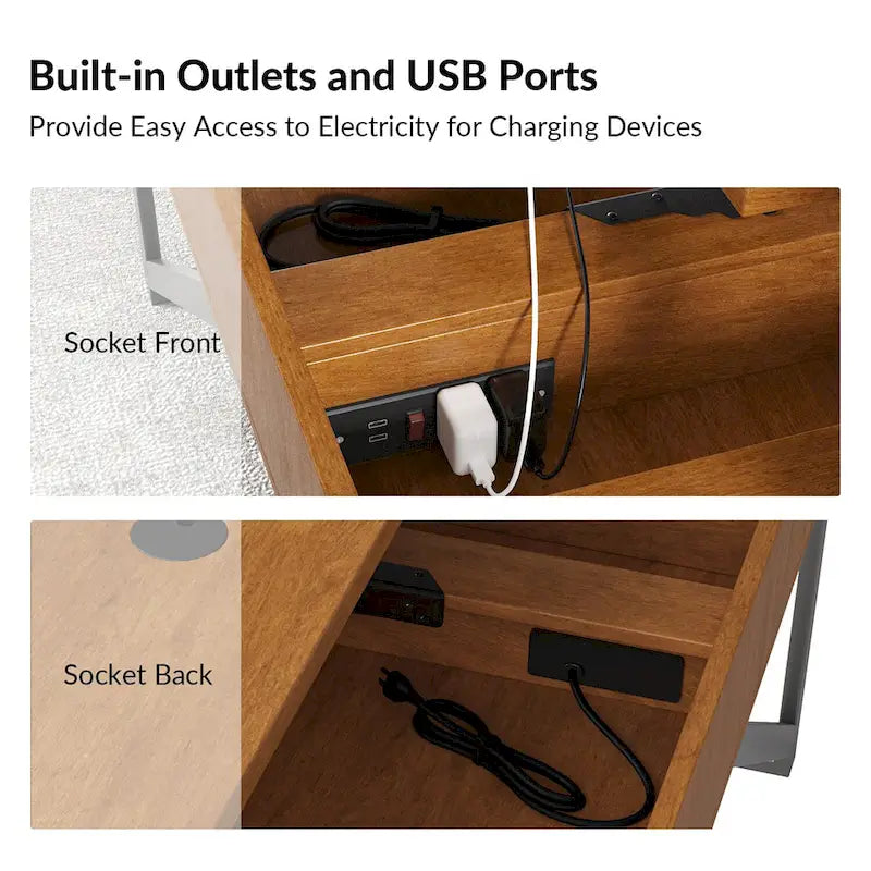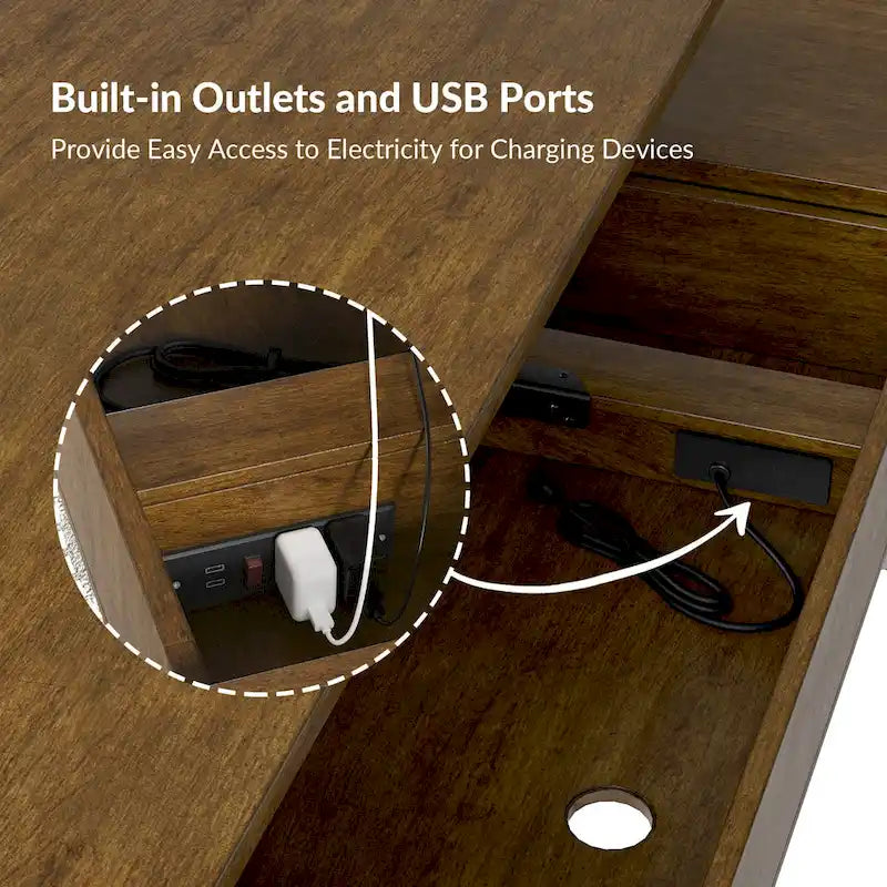 Alfons Industrial L-shaped Lift Top Cane Executive Office Desk with Drawers and Built-In Outlets by HULALA HOME