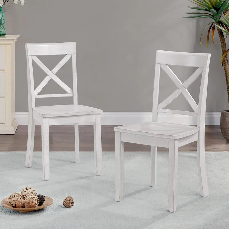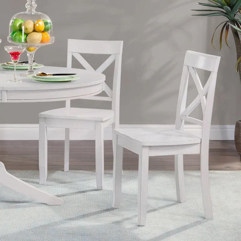 Add visual interest and rustic charm to your dining area with this pair of cross-back chairs. The classic rubberwood frames feature contoured seats and farmhouse-inspired X-shaped seat backs to complement your shabby-chic aesthetic. Pick from these antique-finished colors to pair perfectly with your decor.