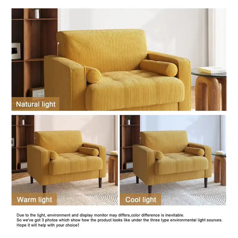 - Accent sofa chair has high-quality corduroy cover, which is soft to touch thickened seat cushion is filled with high-density sponge, which ensures a plush and comfortable seating experience overstuffed back cushion with zipper design adds more comfort and is easy to remove.