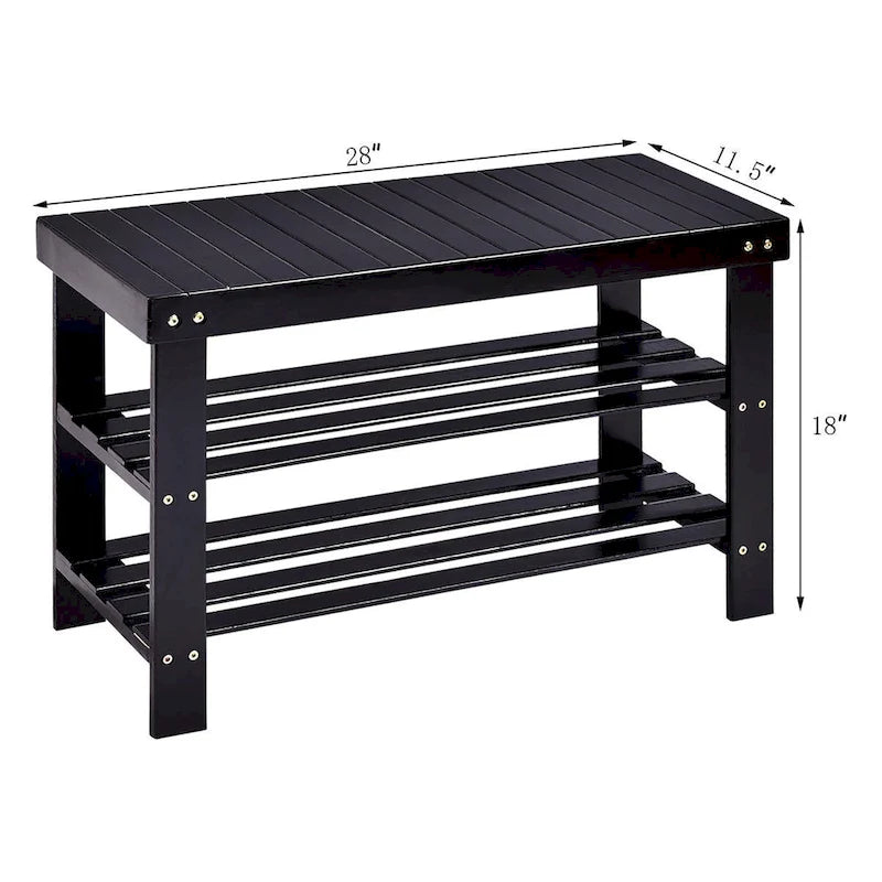 Bamboo Shoe Rack Bench 3 Tier Shoe Organizer Storage Shelf