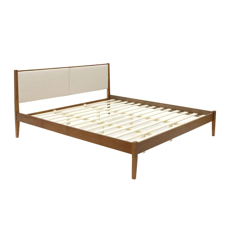 Beige Upholstered Headboard and Wood Frame Set, Queen or King