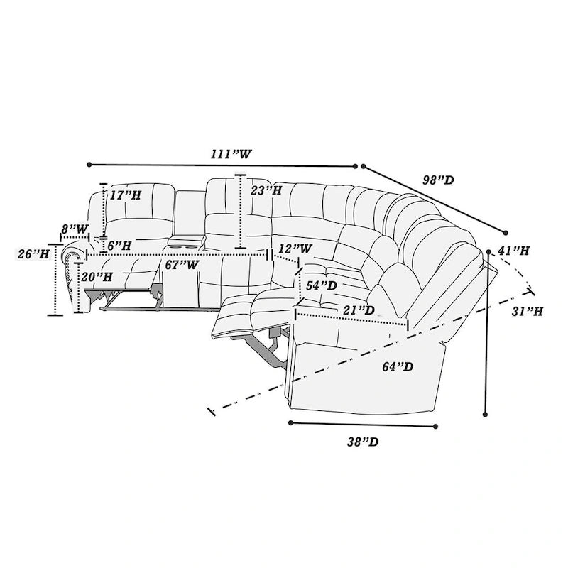 Upgrade your living space with this sleek and practical bonded leather motion sectional. Sink into the cozy high-density foam padding as you relax against the three-tiered pillow-style back supports. With a console storage compartment and cup holders on the side, this sectional is both stylish and convenient. Easily recline with the side handle for ultimate comfort.