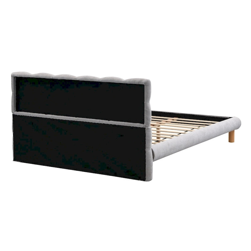 Modern Design:The bed's standout cookie-shaped headboard and chic grey upholstery create a sophisticated yet versatile look, making it suitable for a variety of home dcor styles.