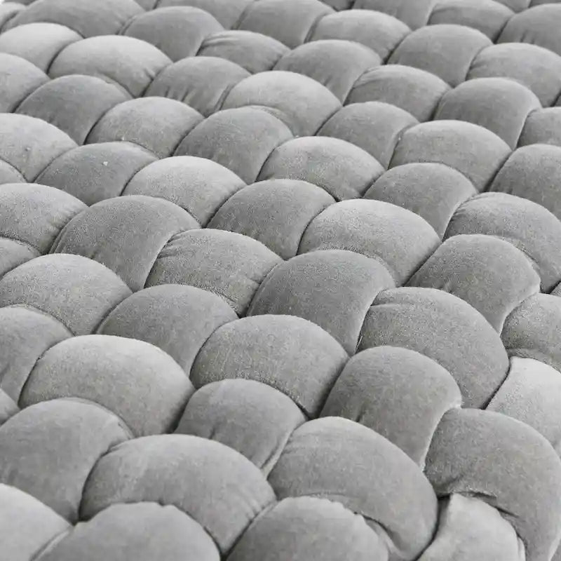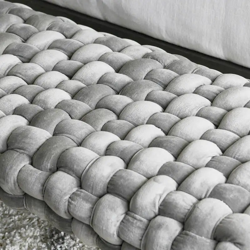 Chunky Woven Velvet Entryway Bench with Wood Legs