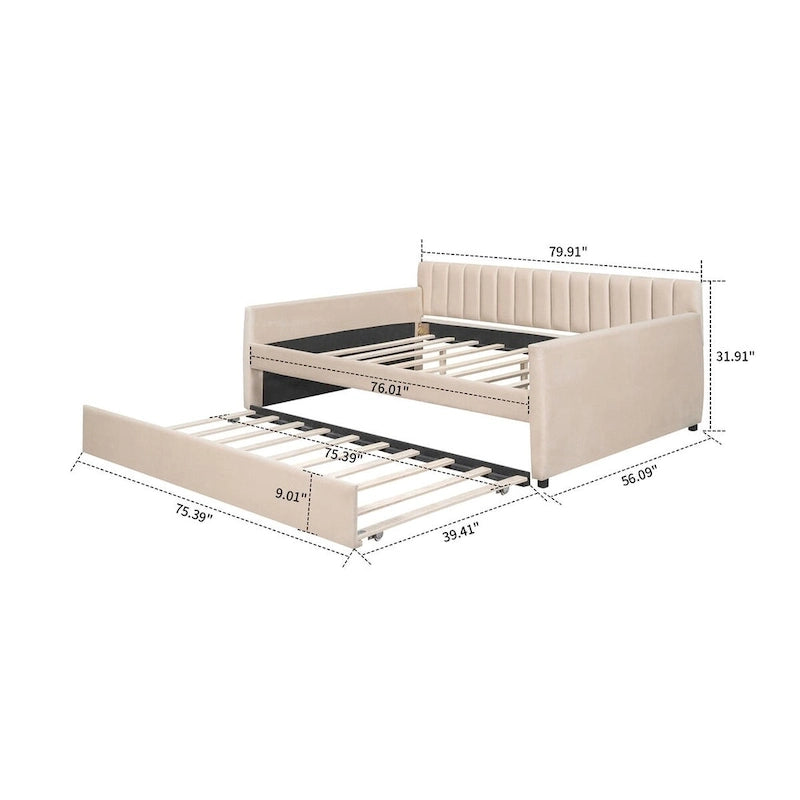 Classic Full Size Velvet Upholstered Daybed with a Trundle Bed