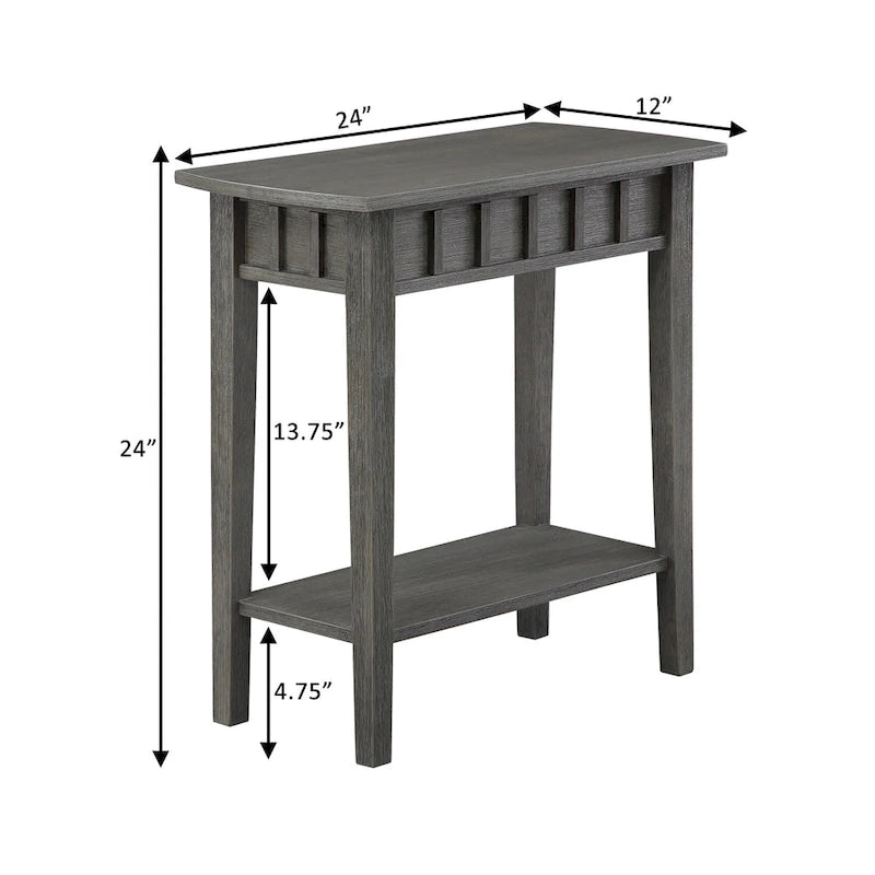 The Dennis End Table with Shelf has what it takes to make a statement in your home. This beautiful and modern piece is part of the standout Classic Accents Collection by Convenience Concepts. Slightly curved edges provide a fashionable look while the detailed apron pane boasts a traditional feel that will blend seamlessly with current furniture. Place in the living room, home office, or entryway and allow this multifunctional piece to optimize storage and display thanks to its two tiers of table space. Finished with a non-lead-based paint, the sleek tapered legs built of solid rubberwood support the two tiers of shelving crafted from MDF. You are sure to find a finish to complement current home decor with the wide assortment of finishes available. Complete the perfect home look with more from the Classic Accents Collection by Convenience Concepts, each sold separately.
