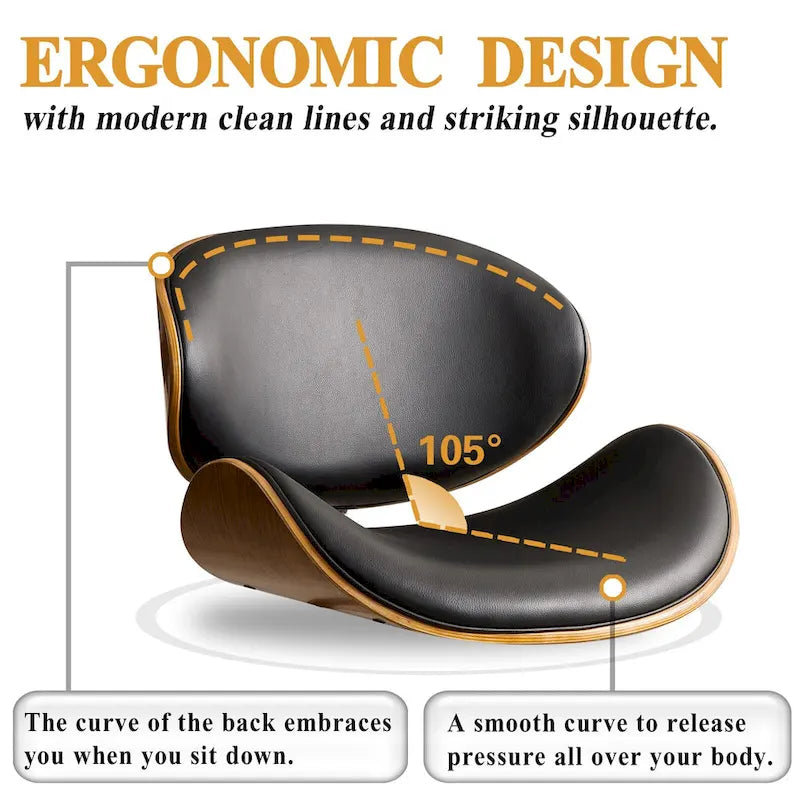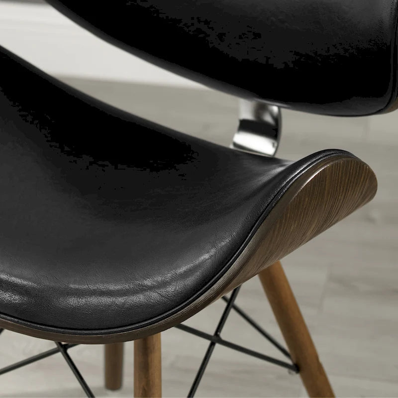 Add a touch of mid-century chic to your living space with the Corvus Madonna Accent Chair. Featuring an elegant curved silhouette and stylish splayed legs, this chair offers a timeless retro appeal. The striking contrast between the sleek black bonded leather upholstery and the warm brown wood finish enhances its sophisticated allure, making it a standout addition to any room.
