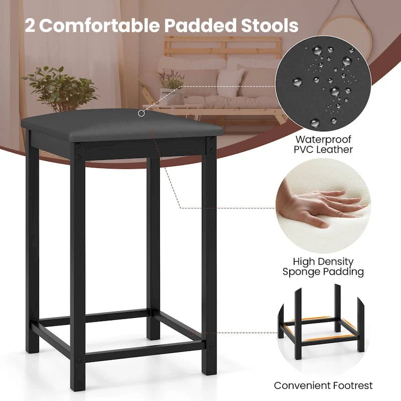 Are you looking for an ideal dining table set for a small space? This is our new 3 piece dining table set designed for one or two people, perfect for kitchens or dining rooms with small space. It also designed to save space, as you can hide the stools under the table when not using them, occupying fewer areas and improving space utilization. You can enjoy the meals or have a glass of wine with your friend or couple. Designed in modern and simple style, this dining table set adds extra contemporary feel to your home. Besides, the set is made of high quality materials which provide sturdiness during using, so that you can use for a long time. Don't hesitate and come to buy a set.