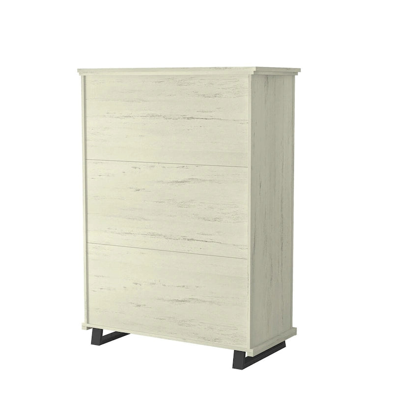 Elevate your bedroom with our stylish and versatile 5-piece bedroom set. This ensemble features 1 chest and 1 dresser, offering ample storage solutions for all your possessions. Infused with farmhouse design, elevated metal legs, and a soothing weathered touch, this set introduces warmth and style to any decor. Crafted from durable wood, metal, and warp resistant medium-density fiberboard materials, it boasts easy maintenance and resistance to water, scratches, and stainsmaking it an ideal choice for family homes or college living. Experience hassle-free assembly with comprehensive instructions and all hardware provided for your convenience.