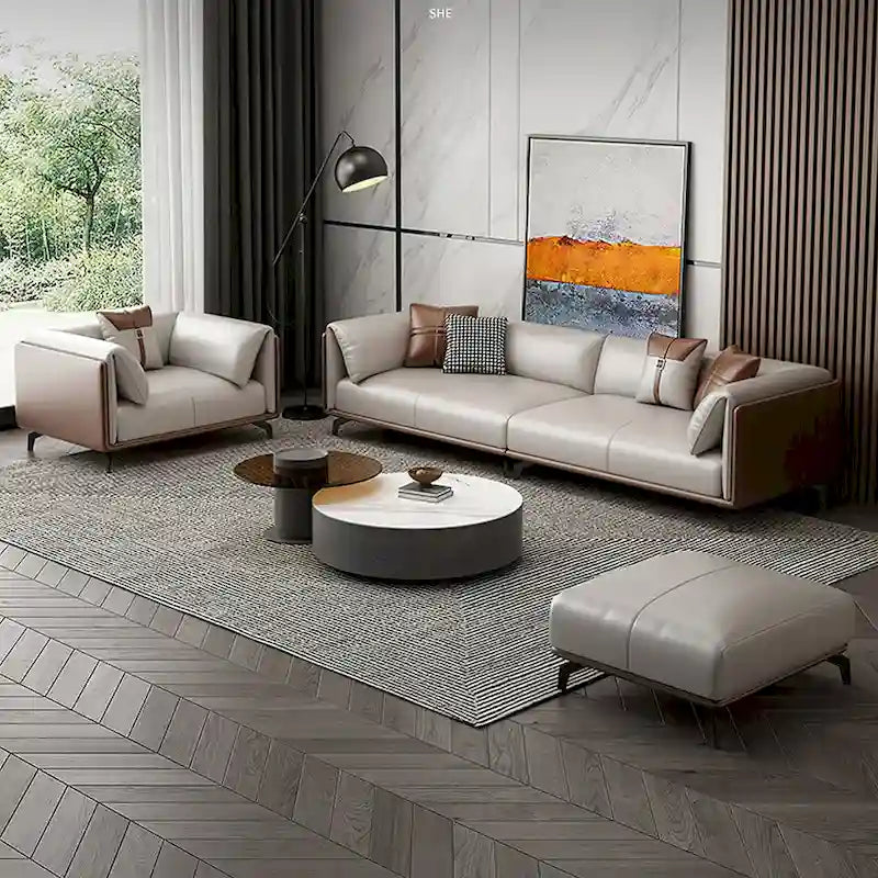 Elevate your living room with a touch of modern sophistication courtesy of our stunning beige sofa. Effortlessly blending comfort and style, this statement piece is sure to become the focal point of your space. Immerse yourself in luxurious comfort with medium-firm cushions featuring a spring foundation and high-density sponge, offering optimal support for hours of relaxation. Crafted with thickened faux leather upholstery, this sofa not only exudes elegance but also ensures easy cleaning and resistance to stains, making maintenance a breeze. Built to last, this sofa boasts a sturdy wooden frame and sleek metal legs, providing robust support with a maximum weight capacity of up to 550 lbs. Sink into the plush comfort of thick foam cushions that create a supportive base and back, allowing you to lounge for hours on end without discomfort.Feature BulletsEasy Assembly: Minimal assembly is required, allowing you to enjoy your new sofa with ease and convenience.Enhanced Stability: Reinforced with a sturdy wooden frame and metal legs, this sofa offers enhanced stability and durability, ensuring long-lasting performance.Durable Construction: Crafted with quality materials and expert craftsmanship, this sofa is designed to withstand daily use and maintain its beauty for years to come.Spacious Seating: With ample seating space, this sofa provides room for family and friends to gather and unwind in comfort, perfect for entertaining or cozy nights in.Versatile Beige Finish: The trendy beige finish adds a modern touch to any living room decor, effortlessly complementing a variety of color schemes and styles.