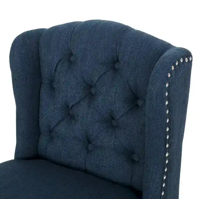 Offer your home the luxurious style it deserves with our set of gorgeous contemporary counter stools. Featuring a classic button-tufted backrest with diamond patterned stitching and a refined wingback design, our counter stool set brings an elegant touch to any interior space. The upholstered seating is finished with an exquisite nailhead trim that truly accentuates the superior style of your home. Finished with a solid rubberwood frame, this set of counter stools also provides sturdy durability to any kitchen counter or home bar.