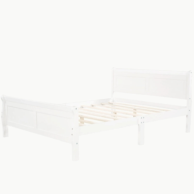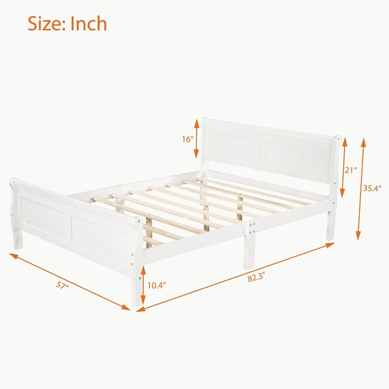 Upgrade your sleeping space with this Wood Platform Bed with Headboard and Footboard. Crafted with solid pine wood and supporting slats, this bed frame is built to last, making it a long-term investment for your home. The classic design complements any style of decor, while the oak wear-resistant finish makes it easy to clean. With ten evenly spaced slats, this bed provides added support and stability for a peaceful night's sleep. Bring home this stylish and durable bed frame today and enjoy its elegance for years to come.