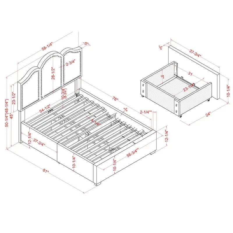 Instantly transform your bedroom into a regal retreat with this gorgeous contemporary upholstered storage bed. A storybook silhouette is wrapped in velvety soft fabric and storage drawers underneath the bed make the most of every inch within your bedroom.