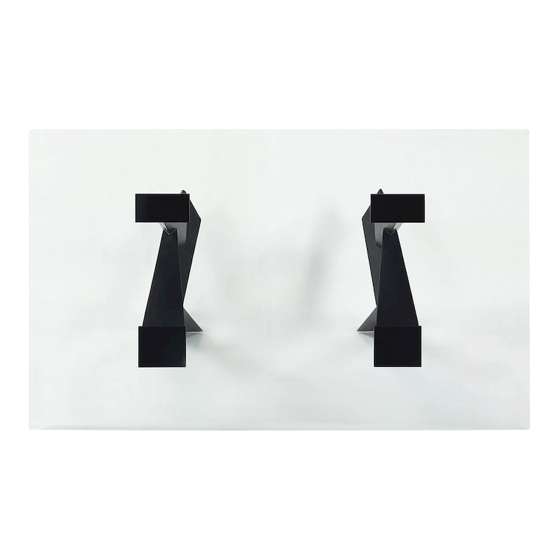 Dive into exceptional, modern style with this eye-catching modern glass and metal dining table. A sculptural base adds abstract elegance and shows off a black finish over steel construction for durability and a versatile look for any color palette.