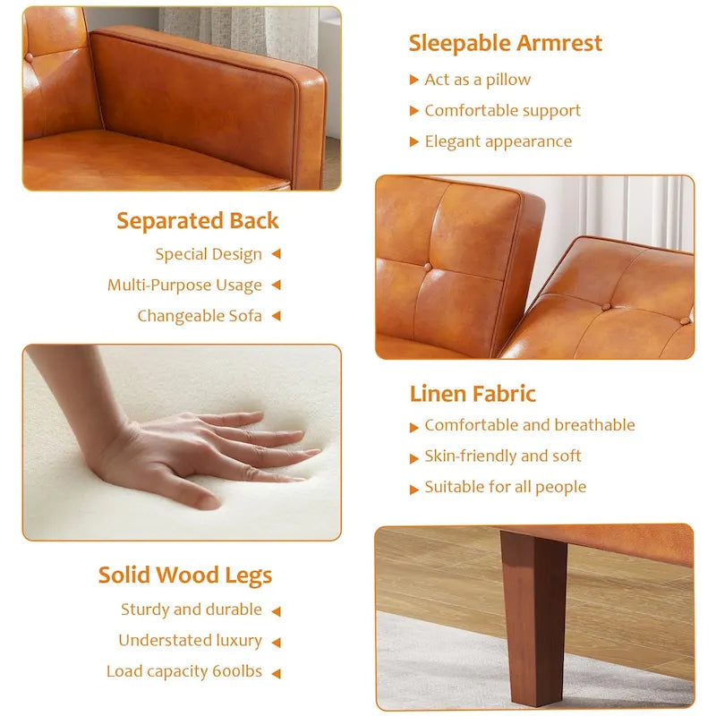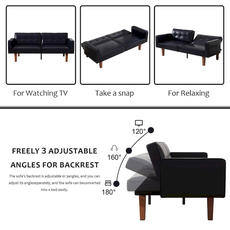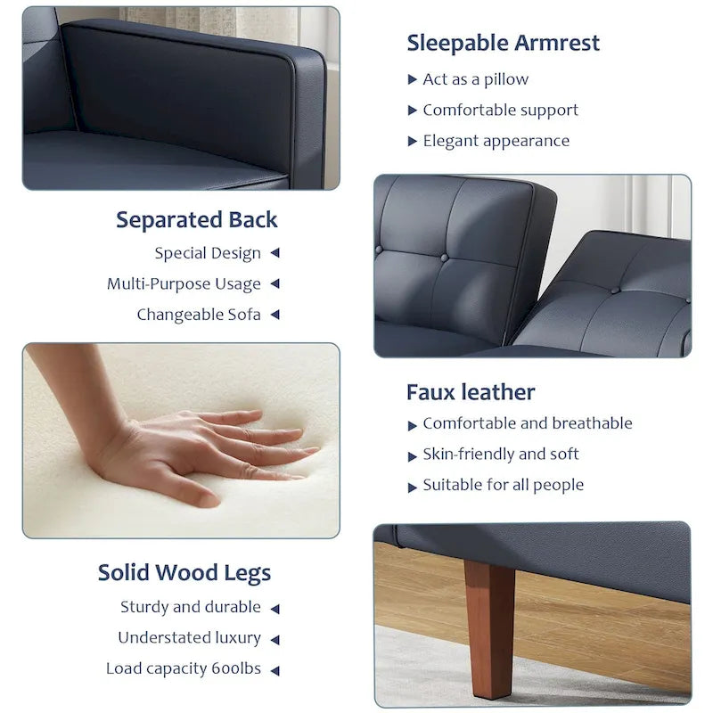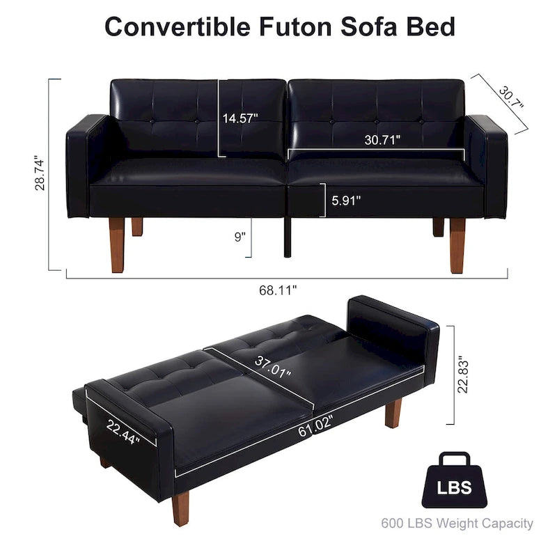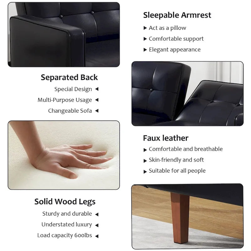 Futon Sofa Bed, Faux Leather Memory Foam Couch,Modern Convertible Love seat for Compact Living Room