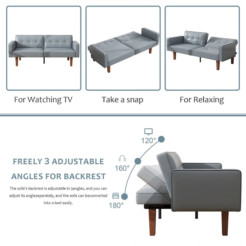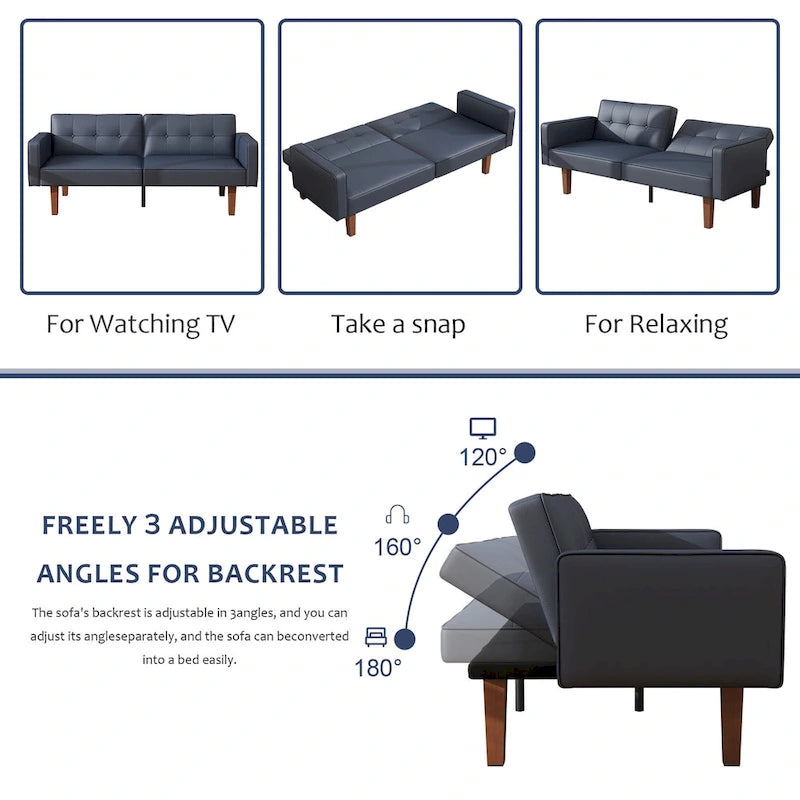 - The sofa bed is exactly what you need and more! Bringing elegance and sophistication into your home with its vintage silhouette, smooth lines and high-quality details. The seat cushions are filled with high-density foam and responsive memory foam that will cradle your body to help relieve pressure points while you are watching TV or taking a much needed afternoon nap. The backrest design can be independently reclined to convert between multiple positions: sitting, lounging and sleeping. In other words, this means that you will now have an extra bed for overnight guests! Available in multiple colors, let the futons couch to add a last touch of chic style!
