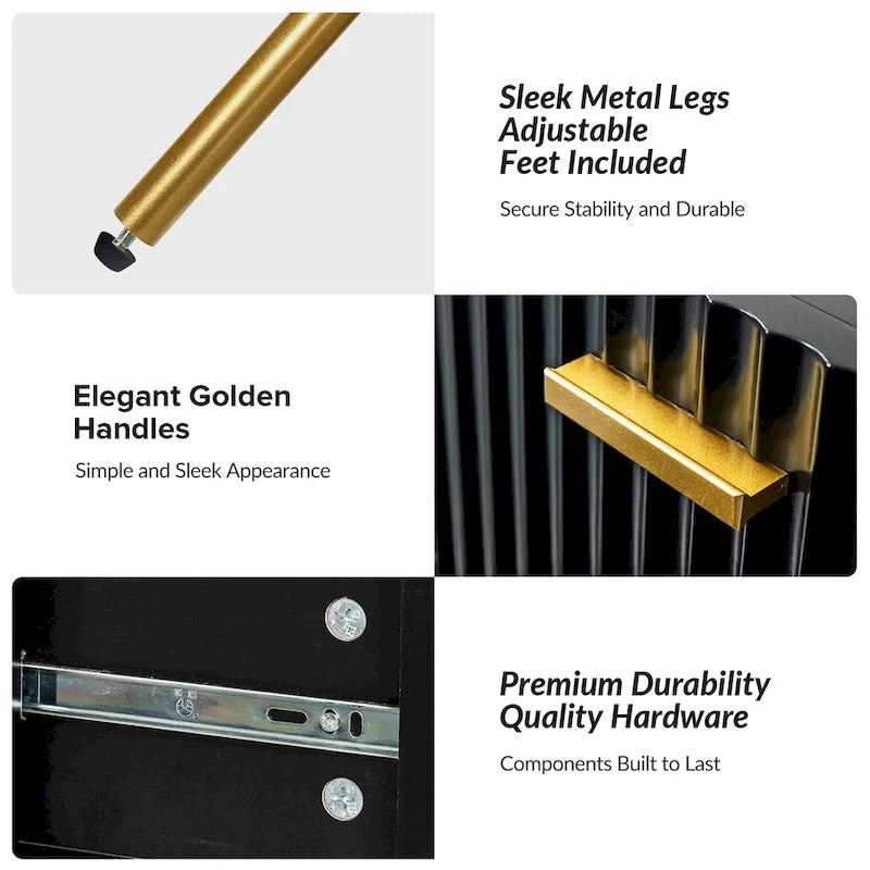 - DISTINCTIVE DECORATION: Elevate your space with this fashion-forward piece boasting uniquely chic-designed doors and sleek metal legs, making it a perfect fit for virtually any modern style or room setting.