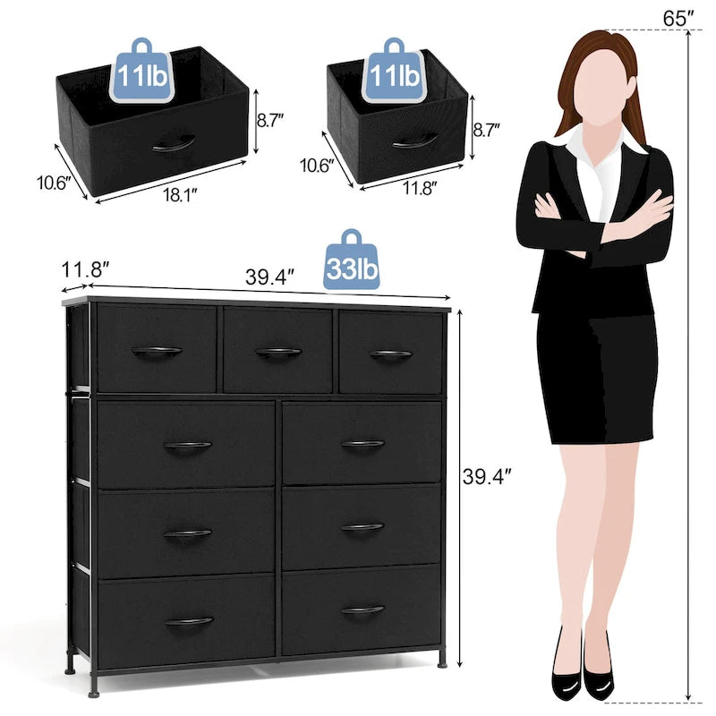 Home Extra Wide Closet Dresser Storage Tower Organizer Unit 9 Drawers