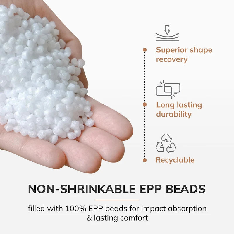 - Pre-filled with firm, recyclable Expanded Polypropylene (EPP) Beads for superior shape recovery