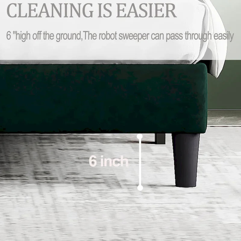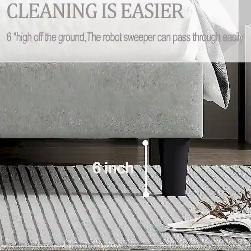 Elegant Design: Full-size bed frame boasts an exquisite design, featuring a headboard crafted from high-quality linen fabric and enveloped in high elastic memory foam. The cushioned side rails provide exceptional comfort for relaxation, while the specially designed Velcro slats make assembly a breeze, effectively eliminating noise