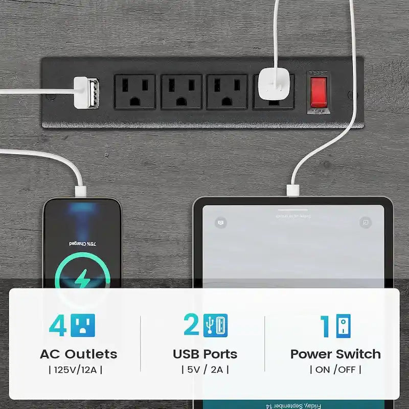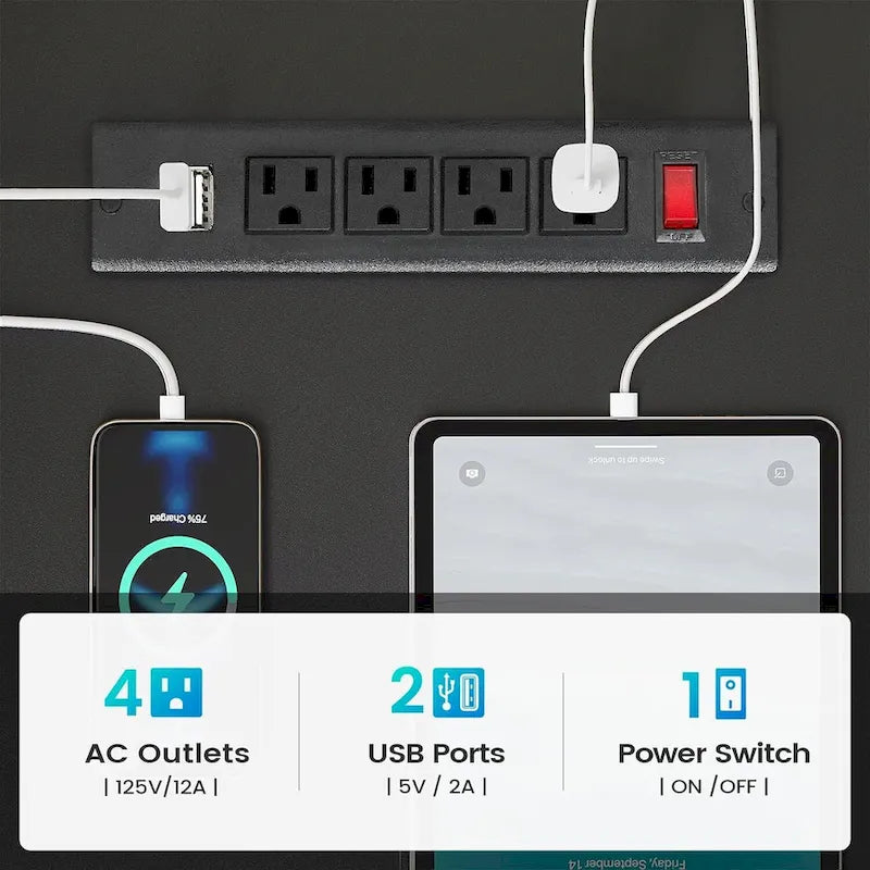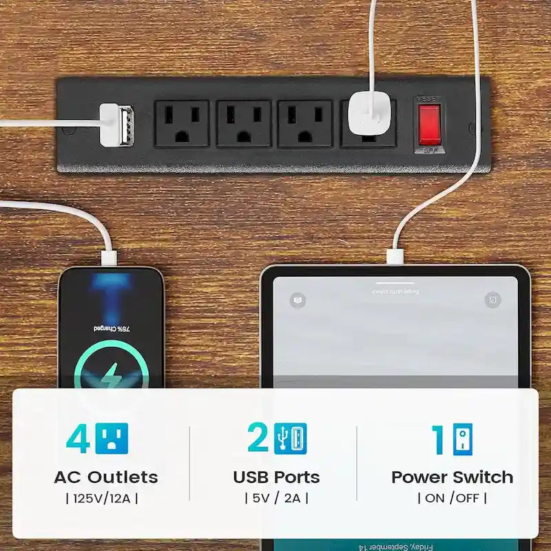 - Charging PortOur charging station includes 4-Outlet & 2 USB Ports to provide power for up to 6 devices simultaneously. Also includes an on-off switch, thanks to the on-off switch, one-button power off to ensure safe electricity use, which strengthens security. Power outlet allows you to charge cell phones, tablets, notebook, etc.