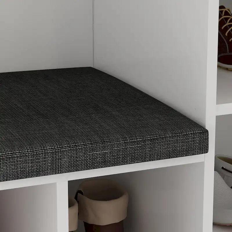 Three hooks are handy for hanging coats, hats, etc. The entryway bench seat makes it easy to take off your shoes as soon as you enter your home which helps to keep the floors of your home free from dust and dirt.