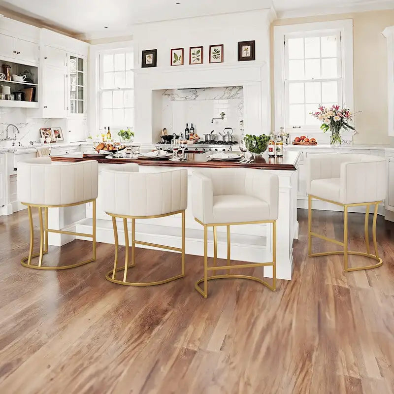 LUE BONA Modern 26.in Low Back Counter Height Barstool Barrel Set of 4 Bar Stools with Metal Frame