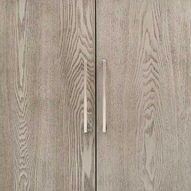 - Metal hinges and handles ensure smooth opening and closing of the cabinets, enhancing user convenience and durability.