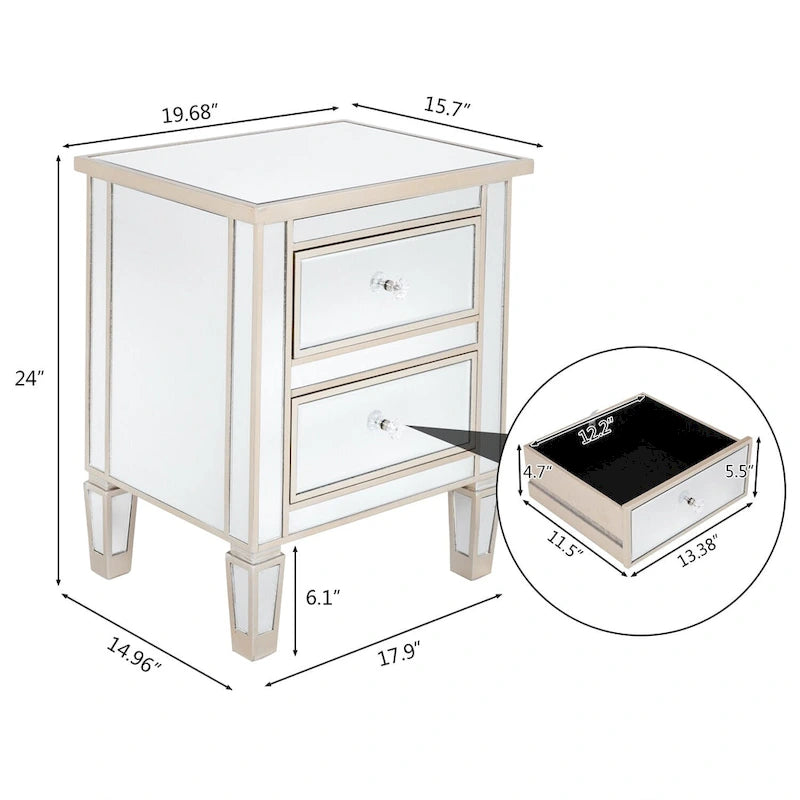 Mirrored 2-Drawers Nightstand Bedside Table