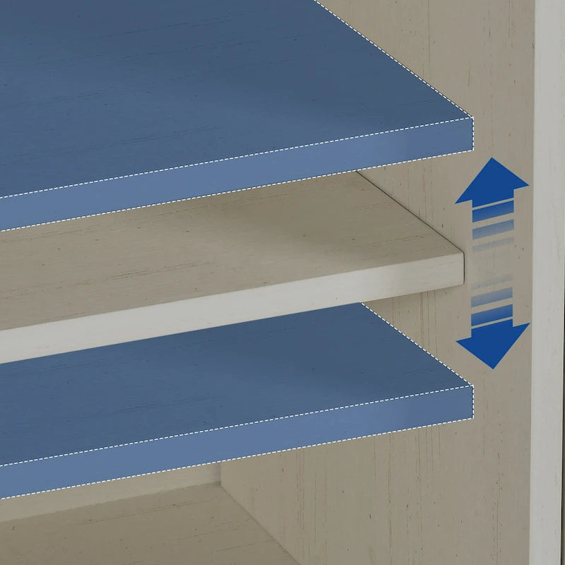 - Benefit from ample storage with adjustable shelves, large drawers, and visual grid doors.
