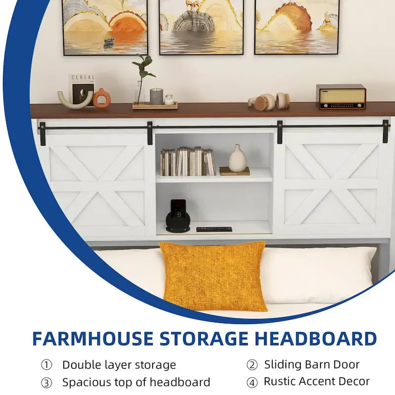 - Farmhouse Aesthetic Element-This desin infuses Bookshelf headboard, sliding barn door system, and tall footboard with classical farmhouse elements into this farmhouse bed frame perfectly,adds a cozy and inviting atmosphere to your bedroom, creating a warm and welcoming space.