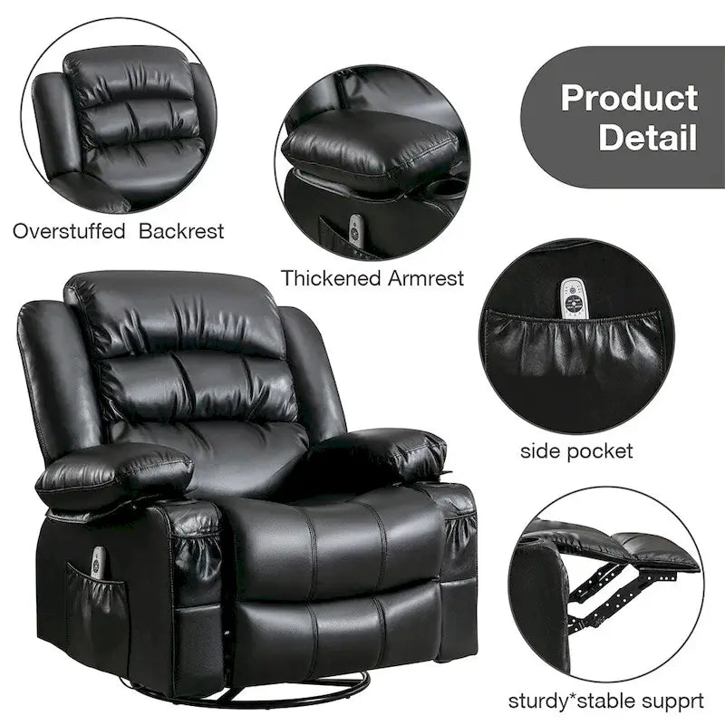 Modern Manual Swivel Rocker Recliner Chair, Massage Heated Chair