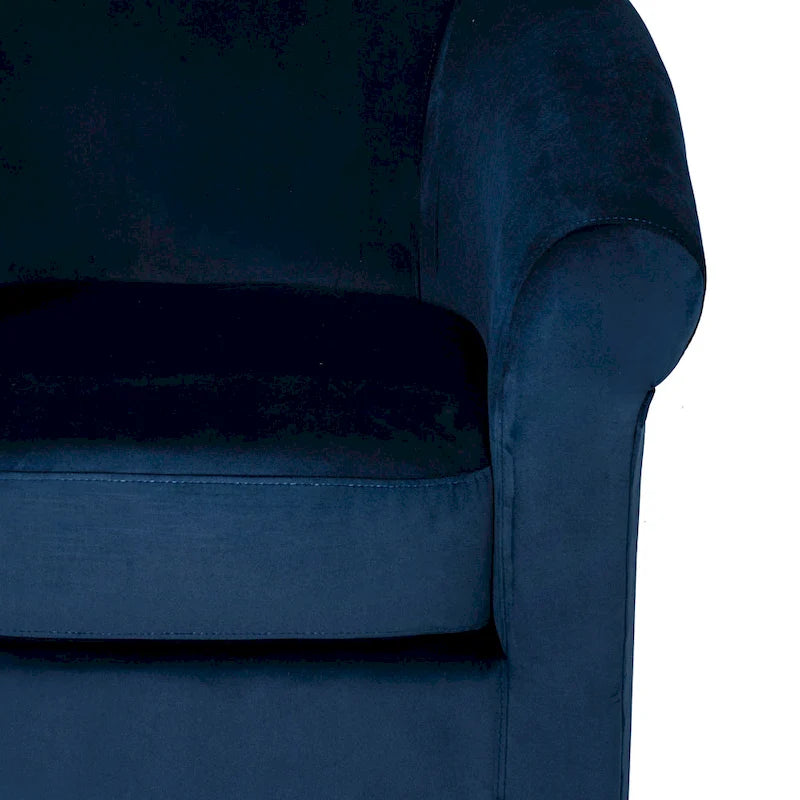 Hunker down with a book and a cup of coffee in this cozy accent chair, available in rich blue or sophisticated gray velvet. The plush upholstery wraps the arched back, rolled arms, and generously padded seat, creating a soft, inviting perch thats surprisingly easy to maintain. A sturdy wooden frame allows the chair to swivel 360 degrees on a metal base, making it simple to change your focus from one part of the room to another. Perfect for your reading nook, living room, or bedroom, this accent chair arrives fully assembled and ready to elevate your space right out of the box.