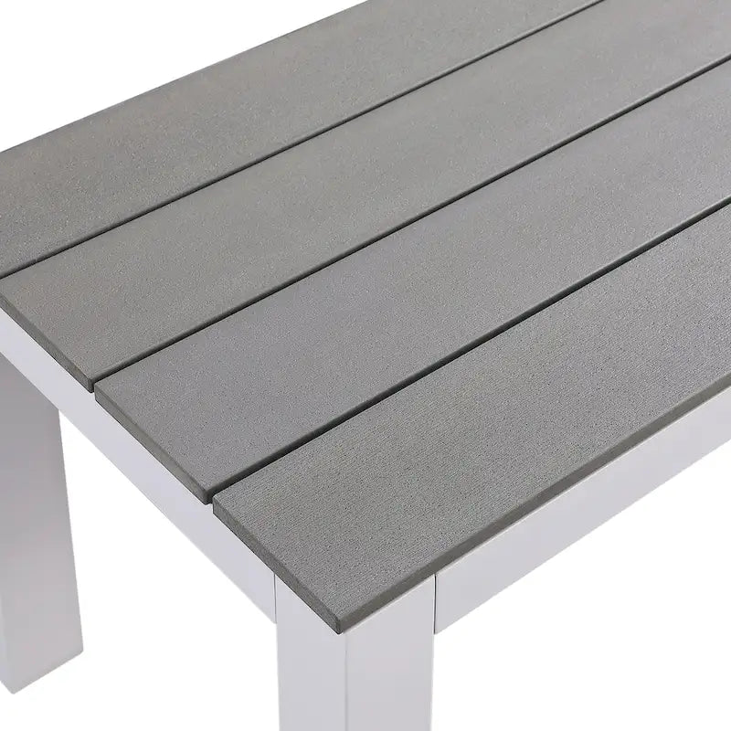 - Slatted faux wood and white frame bench seats