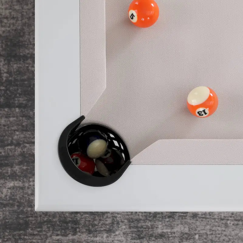 Bring the excitement of a pool hall to your home with the Norwalk Indoor/Outdoor 7ft Billiards Pool Table 6-Seater Dining Set. Made with durable aluminum and genuine slate, this powder-coated table is built to last and can be used indoors or outdoors. The set includes everything you need to hold your own 8-ball tournaments, as well as a table tennis kit for more fun. The table also converts to a dining table with slatted faux wood bench seats for a modern touch. With its versatile design and quality construction, this pool table set is perfect for any home.