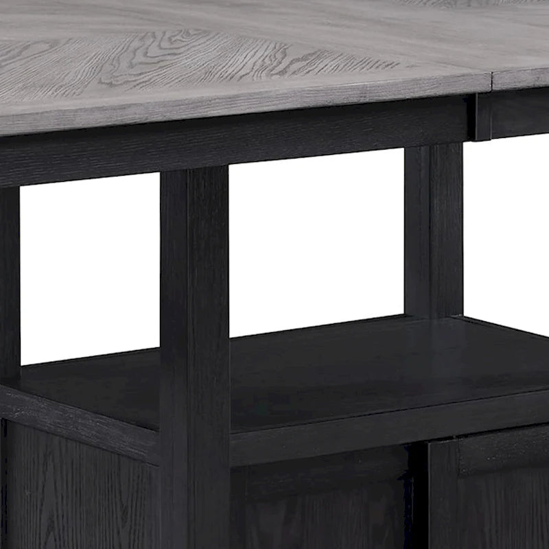 Our Patricia extendable dining table is a perfect choice for those who love a blend of classic and contemporary style. The table features a solid wood top with a gray finish that contrasts beautifully against the black wood base. The table comfortably seats six people at once, and it has a storage shelf at the bottom for dining essentials. Check out our Patricia collection for more matching items.