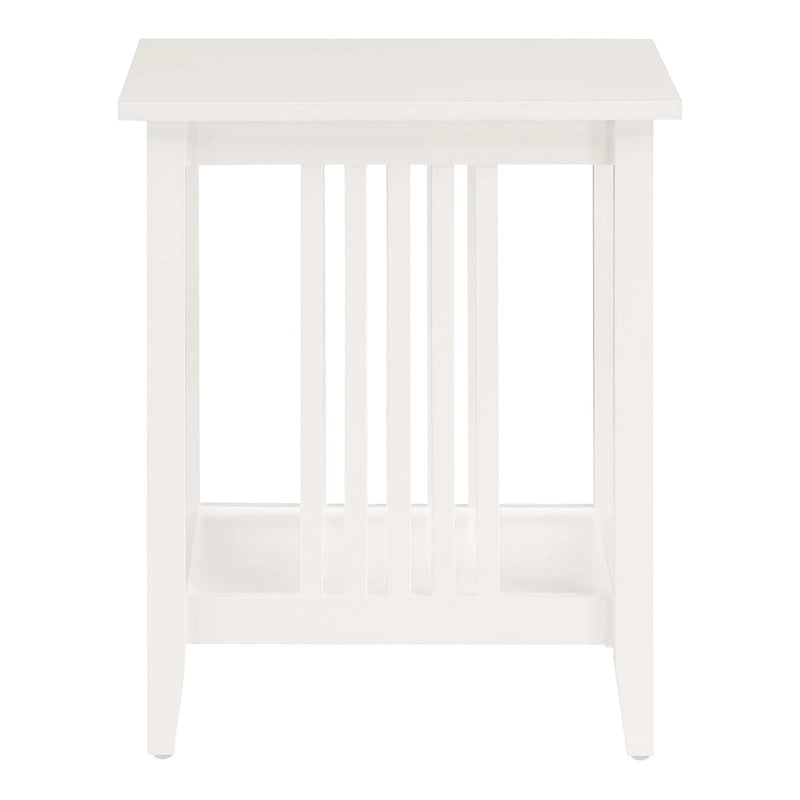 Introduce a touch of classic elegance to your space with the Porch & Den Clifton Mission Medium Oak Wood Finish Side Table. Made of solid and engineered oak wood, this side table features a medium oak brown finish that complements any decor. It has slatted sides and four straight, parallel, tapering wood legs, which add an elegant touch to its overall design. The lower shelf is perfect for displaying your favorite items, while the barred sides keep them in view. Weighing 26 lbs. and measuring 20 inches wide x 20 inches deep x 24 inches tall, this assembly-required side table offers both form and function.