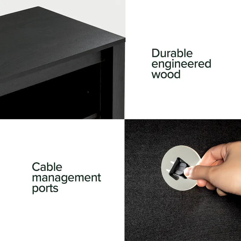 Our Camden TV Stand is so much more than just a place to set your big screen. Made for TVs up to 65, this modern entertainment center is made with 4 spacious, open shelves with cord management ports that you can use for electronics, plants, dcor, storage baskets, or an extra throw blanket for the couch! Clean-lined with a wood-like finish, this cabinet is made with durable engineered wood that can support up to 100 lbs. Equally as practical in your living room or entryway, this versatile piece of furniture is both functional and attractive. And everything you'll need to put it together stress-free is included in one carefully packed box that arrives at your door- no complicated assembly to worry about! Whether it's your spot for watching the big game or simply a cabinet that helps you stay organized, the Camden TV Stand fits anywhere in your home.