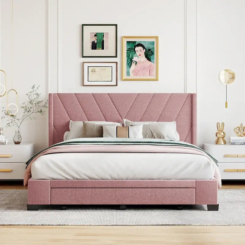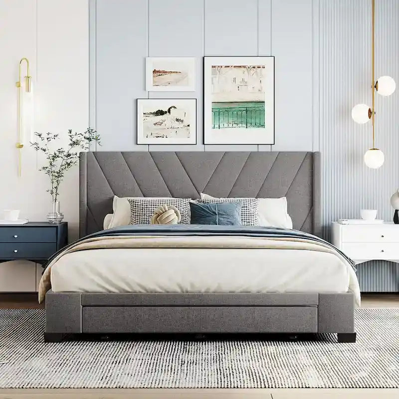 Queen Size Storage Bed Linen Upholstered Platform Bed with 3 Drawers