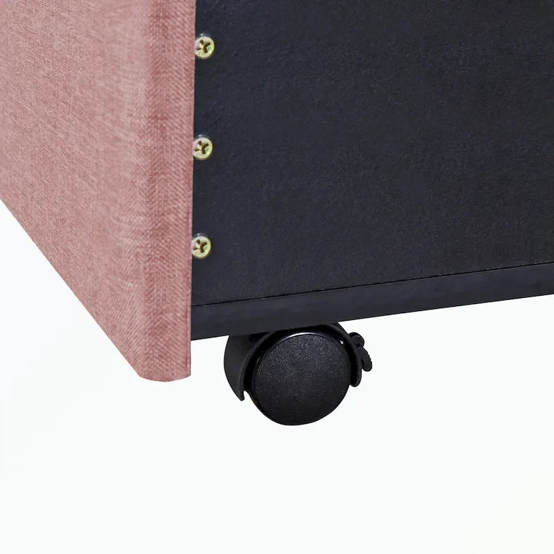 [Solid & Sturdy] The bed frame is made of solid wood, plywood, MDF and skin-friendly linen, providing a dense and strong support for up to 500lbs. The construction ensures both a lifetime of use, and a sturdy bed frame with a head which won't wobble.