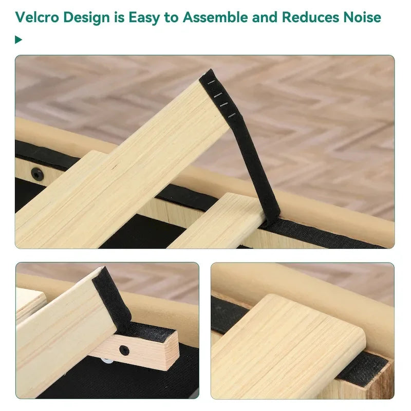 - Sturdy wooden platform that supports your mattress without a box spring