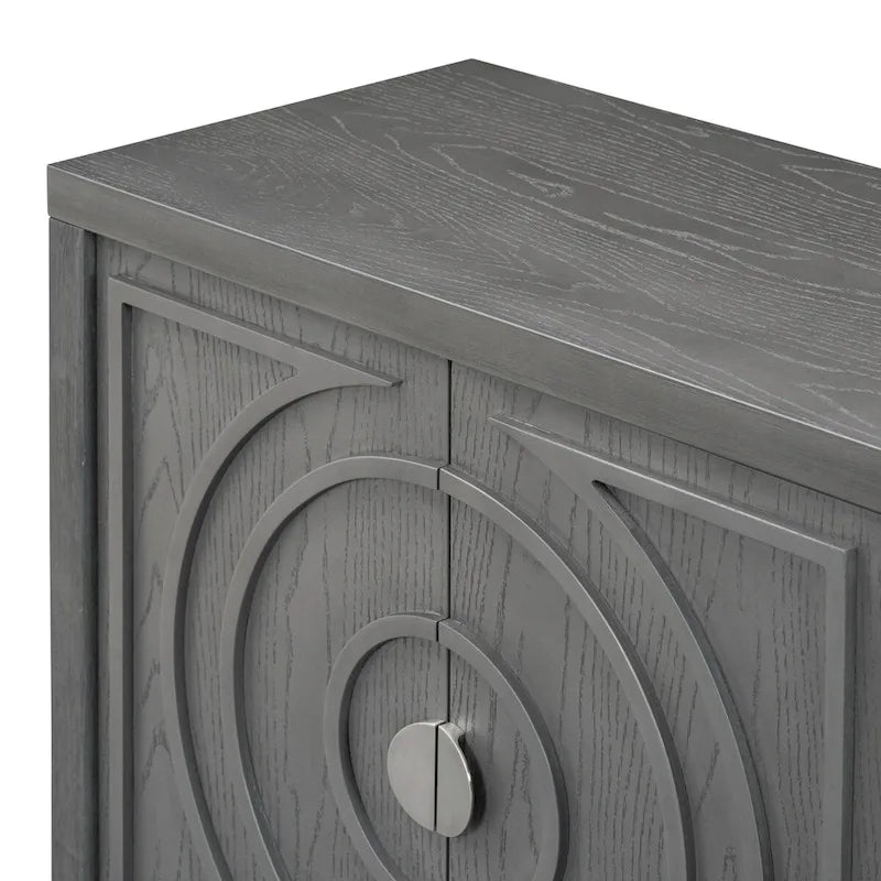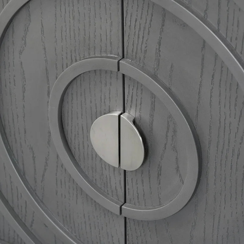 Retro Sideboard Doors with Circular Groove Design Round Metal Door Handle - 60L x 16W x 32H