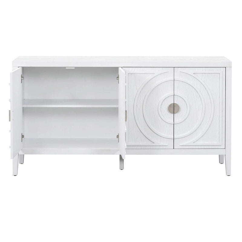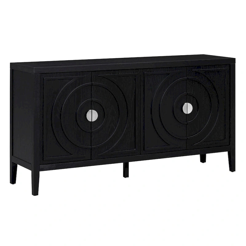 - Retro sideboard with rounded lines on four doors creates a dimensional aesthetic, ideal for kitchen, entryway, or living room.
