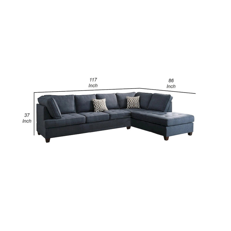 Roda 2 Piece L Shape Sectional Sofa with Reversible Chaise, Blue Fabric