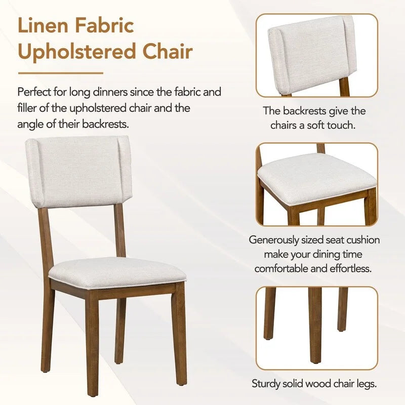 [Solid Wood Dining Table Set] This kitchen table set includes 1 large rectangular dining table and 4 upholstered chairs with linen seats. Solid wood makes each set unique with its natural and varying grain. The rustic design brings out the beauty of the grain. Durable solid wood and antique color finish will outlast many years of use.